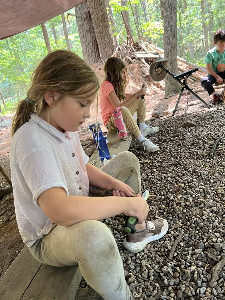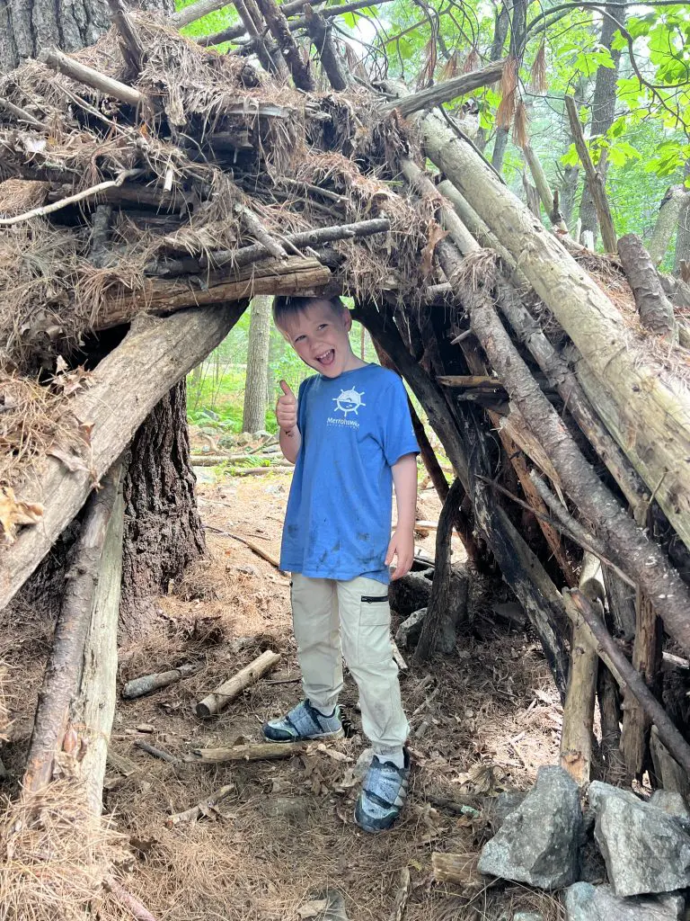 In regards to overall well being, [my son] really gains confidence here. He complained his other camp we tried did not have enough “risky play”, and appreciates being able to pick up sticks and crack open rocks etc. “Have fun and be safe” is his favorite set of rules, as he feels trusted at Merrohawke to make some safe decisions. Also, he loves being able to get dirty and have lots of free time to explore and be creative. I’m not sure any other camp could compare to the joy brought by the “frog hotel.”